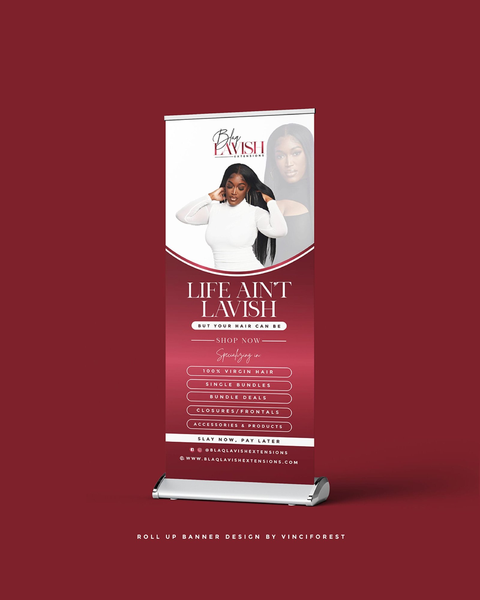 - Retractable banner will be designed with logo, pictures, and writings.